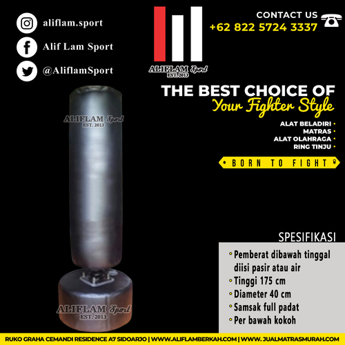 • Tabung bagian bawah ukuran besar, jika diisi pasir/air penuh akan minim goyang & tetap kokoh saat dipukul maupun ditendang