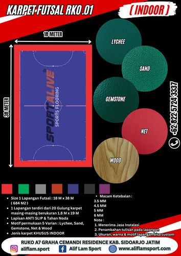 KARPET FUTSAL KARPET FUTSAL INDOOR | Alas Lapangan Futsal | Karpet Lapangan Futsal | Lantai Lapangan Futsal | Karpet Lapangan Olahraga VINYL FUTSAL Rp 0 Share this: Click to share on WhatsApp (Opens in new window) WhatsApp Click to email a link to a friend (Opens in new window) Email Click to share on Facebook (Opens in new window) Facebook Click to print (Opens in new window) Print