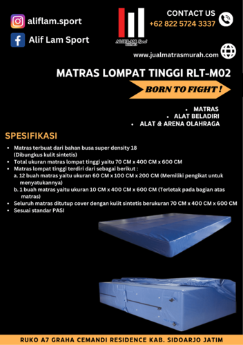 MATRAS MATRAS BELADIRI Matras Puzzle 1 Meter TEBAL 1 CM – RMP.01 Rp 95,000 Matras Beladiri Tebal 2 CM – RMP.02 Rp 155,000 Matras Beladiri Tebal 3 CM – RMP.03 Rp 190,000 Matras Silat 4 CM SET ( 100 Lembar ) – RMP.04 Rp 24,500,000 Matras Silat 5 CM SET ( 100 Lembar ) – RMP.05 Rp 31,500,000 Matras Beladiri 2 SISI 3 CM ( Matras Karate Matras Taekwondo ) – RMP.07 Rp 200,000 Matras Beladiri 2 SISI 3 CM ( Matras Taekwondo Matras Karate ) – RMP.07A Rp 265,000 Matras TATAMI Judo Gulat Aikido Yongmoodo 5 CM ( 200×100 CM ) – RMT.01 Rp 700,000 Matras TATAMI Judo Gulat Aikido Yongmoodo 6 CM ( 200×100 CM ) – RMT.02 Rp 750,000 Matras TATAMI Pro Judo Gulat Aikido Yongmoodo 5 CM ( 200×100 CM ) – RMT.03 Rp 925,000 Matras TATAMI Pro Judo Gulat Aikido Yongmoodo 6 CM ( 200×100 CM ) – RMT.05 Rp 975,000 MATRAS JUDO SET 1 LAPANGAN – RMT.02A Rp 53,750,000 MATRAS JUDO SET 1 LAPANGAN – RMT.05A Rp 70,000,000 MATRAS OLAHRAGA Matras Olahraga Sekolah 200 x 100 x 15 CM – RMS.01 Rp 1,000,000 Matras Olahraga Sekolah 200 x 100 x 20 CM – RMS.03 Rp 1,300,000 Matras Senam Lantai Ukuran 200 x 100 x 15 CM – RMS.01A Rp 1,350,000 Matras Senam Lantai Ukuran 200 x 100 x 20 CM – RMS.03A Rp 2,000,000 Matras Lompat Tinggi RLT-M01 Rp 15,950,000 Matras Lompat Tinggi PASI Atletik RLT-M02 Rp 37,000,000 MATRAS YOGA 8 MM Rp 140,000 Matras Senam Hamil 180 x 60 x 2 CM – RMH.01 Rp 175,000 Matras Puzzle Anak 30 CM ( Pack ) Rp 80,000 Share this: Click to share on WhatsApp (Opens in new window) WhatsApp Click to email a link to a friend (Opens in new window) Email Click to share on Facebook (Opens in new window) Facebook Click to print (Opens in new window) Print