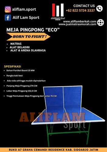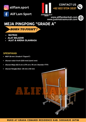 MEJA PINGPONG Meja Pingpong Lipat “ECO” Tenis Meja 15MM Rp 2,500,000 Meja Pingpong Portable 15MM Tenis Meja Lipat “Grade C” Rp 3,750,000 Meja Pingpong MDF 18 MM Tenis Meja “Grade B” Rp 5,250,000 Meja Pingpong Tournament MDF GRADE A “Export” 18 MM Tenis Meja Rp 5,750,000 Share this: Click to share on WhatsApp (Opens in new window) WhatsApp Click to email a link to a friend (Opens in new window) Email Click to share on Facebook (Opens in new window) Facebook Click to print (Opens in new window) Print