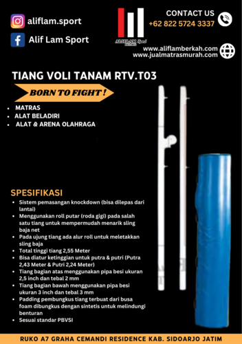TIANG VOLI Tiang Voli PORTABLE RTV.P01 | Tiang Net Voli Beroda Rp 6,500,000 Tiang Voli TANAM RTV.T01 | Tiang Net Voli Rp 2,500,000 Tiang Voli TANAM RTV.T03 | Tiang Net Voli + Padding (Busa Pelindung) Rp 3,750,000 Share this: Click to share on WhatsApp (Opens in new window) WhatsApp Click to email a link to a friend (Opens in new window) Email Click to share on Facebook (Opens in new window) Facebook Click to print (Opens in new window) Print